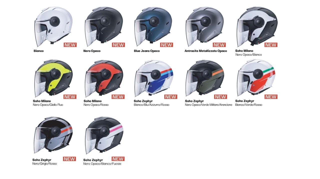 Il Caberg SOHO è disponibile in quattro versioni monocolore: Nero Opaco, Antracite Metallizzato Opaco, Blu Jeans Opaco e Bianco Lucido, al prezzo di 149,99 €. Per chi desidera un tocco di originalità, Caberg propone due versioni grafiche accattivanti, MILANO e ZEPHYR, con diverse combinazioni cromatiche e finiture lucide o opache, disponibili a 169,99 €.
