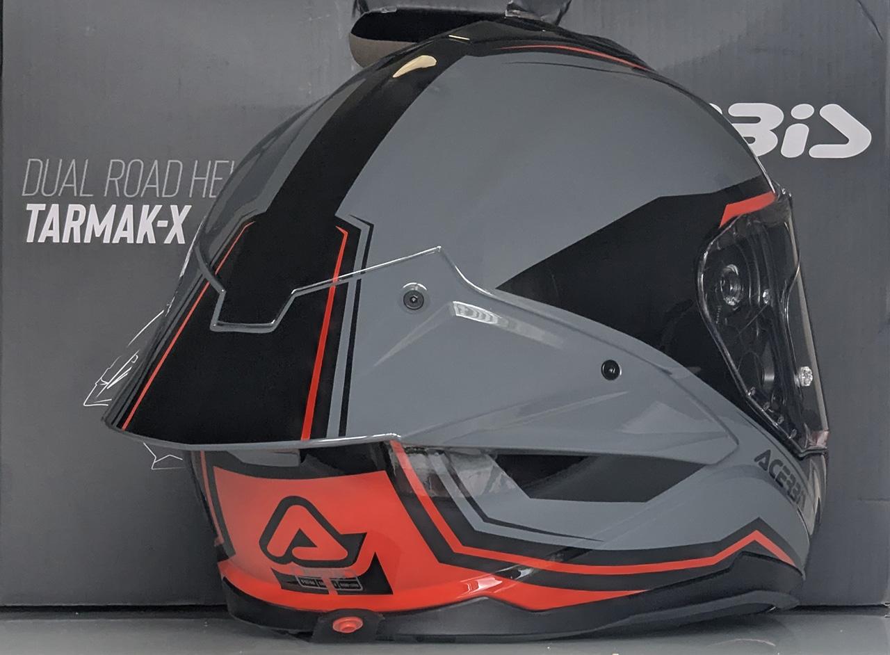 Dal vivo fa scena, senza mezze misure. I profili scolpiti accentuano il dinamismo dell’Acerbis Tarmal-X. Persino la sagoma della presa d’aria superiore è disegnata per aumentare il carattere del casco. Ecco, forse l’unico neo è l’eccesso di personalità. Senza la moto giusta, senza un abbigliamento di livello e fuori dal contesto per cui è stato immaginato, si rischia che sia il casco ad indossare noi e non il contrario. Non so se ci spieghiamo.