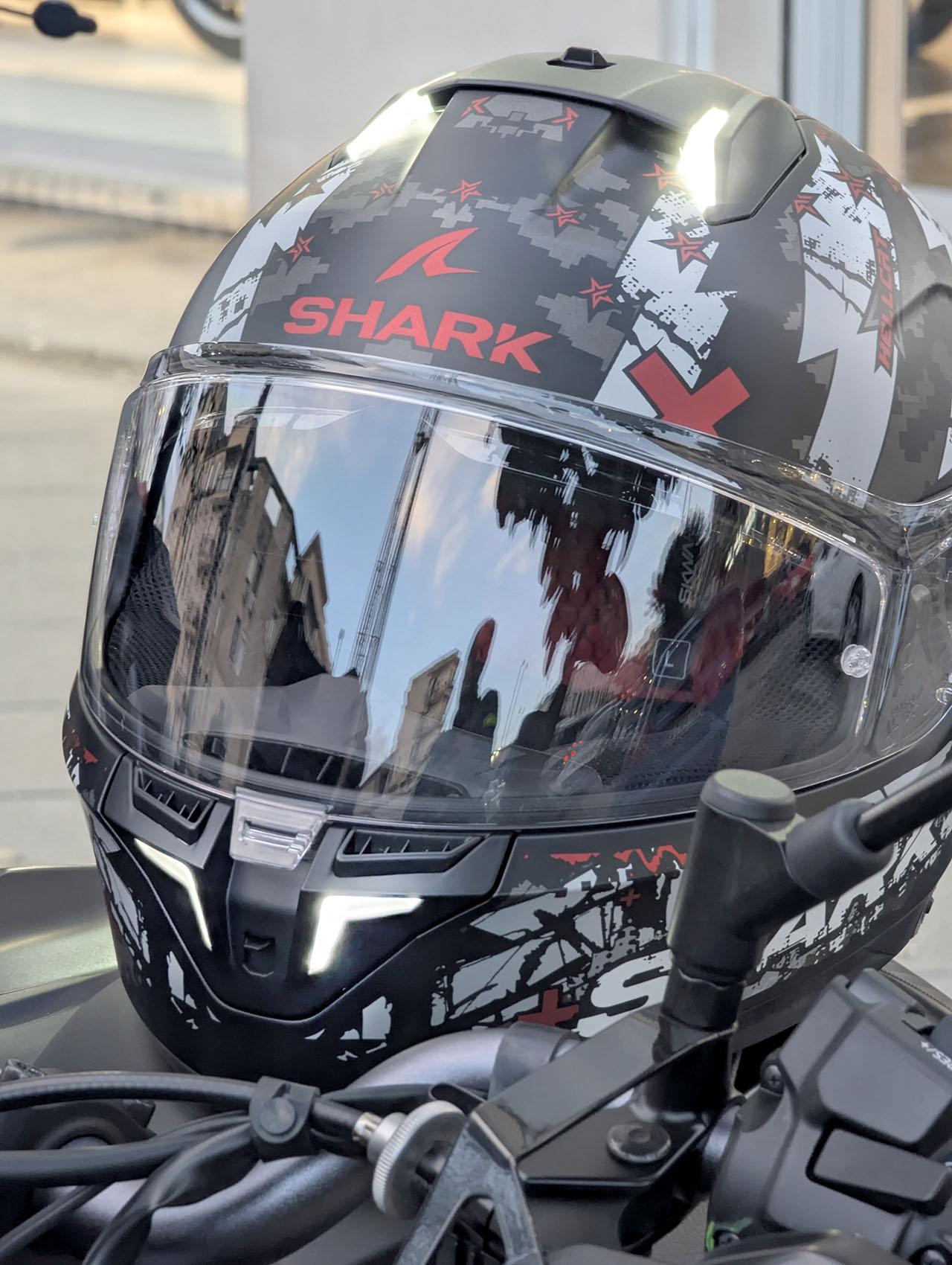 La vera marcia in più, però, è il silenzio. L’isolamento acustico del nostro casco di oggi è davvero molto buono dietro il cupolino e quasi assoluto, a vento in faccia. Una qualità rara, che molti promettono e pochi mantengono. Merito di un progetto che Shark affina da anni, generazione dopo generazione.