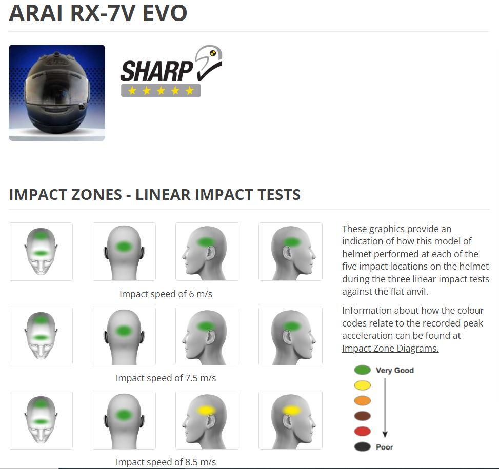 Il casco moto ARAI RX-7V EVO sottoposto ai crash test Sharp è stato promosso con il massimo dei voti: 5 stelle e qualche piccola miglioria da apportare. L’ente di inglese che dal 2007 realizza i crash test sui caschi moto ha pubblicato i risultati delle prove che avvengono su 32 impatti dello stesso modello nelle condizioni di prova più disparate. Le prove che sono state svolte sul casco moto, mirano a verificare il livello di protezione negli impatti riprodotti secondo la norma UN ECE 22.06. Ecco i risultati del test casco moto ARAI RX-7V EVO.