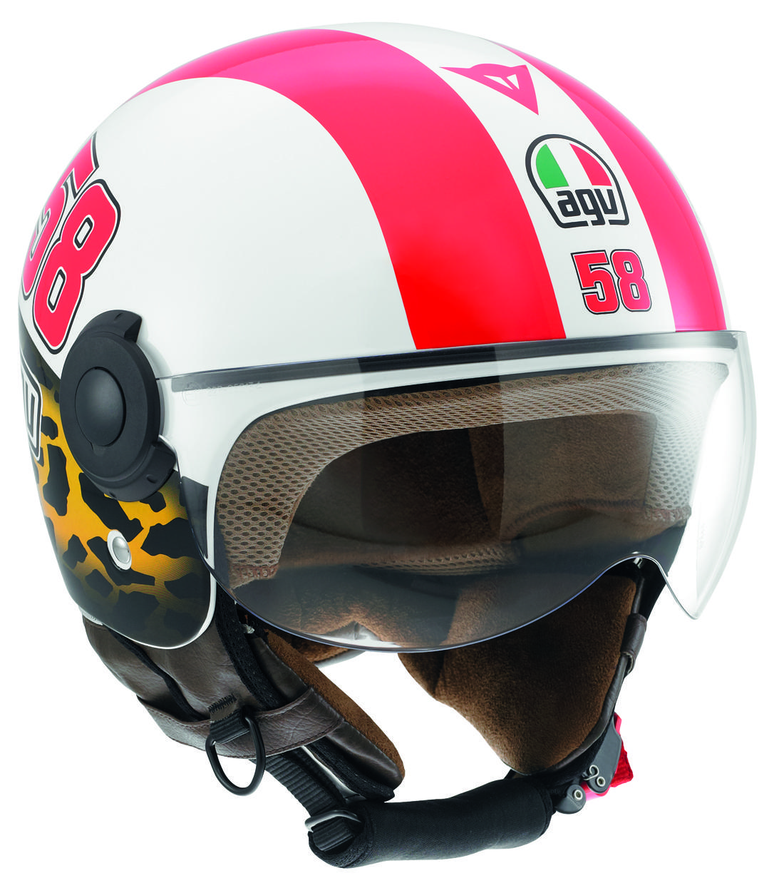 La nuova livrea presenta il logo Dainese sulla sommità della calotta, logo San Carlo sulla mentoniera, l’inconfondibile 58, numero di gara di Marco e il cuore con i colori della bandiera giapponese, in memoria delle vittime del grave terremoto che ha colpito il Giappone nel marzo 2011. Prodotto interamente in Italia, è realizzato con tecnologie avanzatissime e taglio ad acqua.