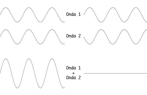 In figura vediamo come due onde si annullano se in opposizione di fase, si amplificano se invece in fase tra loro. Nelle frenate al limite, la forcella, arrivando a fondocorsa, non svolge più la sua funzione ammortizzante nel momento in cui si è in presenza di piccole malformazioni dell’asfalto, il compito quindi di smorzare queste sollecitazioni viene demandato per intero alle gomme, le quali, non essendo in grado, strutturalmente, di svolgere in modo efficace la funzione di ammortizzare, trasferiscono per intero le vibrazioni al telaio; con le stesse modalità, ma questa volta alla ruota posteriore, il fenomeno può comparire in accelerazione, con il monoammortizzatore a finecorsa.