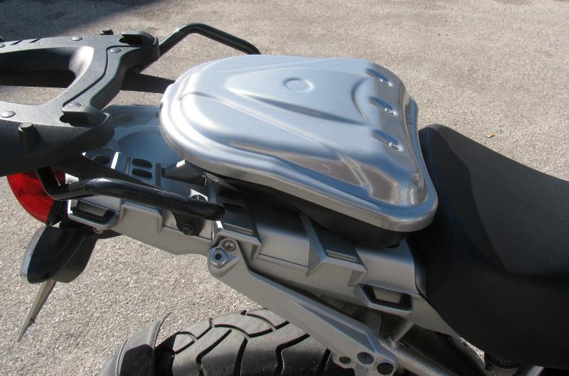 Di fronte a queste considerazioni, viene utile analizzare le qualità di un prodotto come Sportbox, un piccolo contenitore rigido studiato apposta per la R1200GS dalla emiliana Modeltek. Fissato con semplicità al posto della sella passeggero, apribile con la chiave originale della nostra moto, questo semplice ma geniale accessorio è destinato a raccogliere consensi importanti.