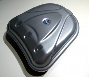 Lo Sporbox che Modeltek ci ha messo a disposizione è la versione color alluminio, che ben si intona con l’anima enduro della Giesse. A onor di cronaca c’è da dire che esistono più versioni di colore, come quella nera e quella con finitura carbonio. Una volta aperta la confezione, togliamo la pellicola protettiva aderente dal box, e rileviamo subito una qualità nella verniciatura e nell’assemblaggio dei componenti davvero superiore alle aspettative. Le istruzioni allegate al box sono chiare e ben comprensibili e ci fanno subito comprendere il furbo sistema di aggancio di Sportbox alla moto: in pratica la parte inferiore si aggancia alla moto attraverso due linguette del tutto simili a quelle presenti nella sella passeggero; la parte superiore è invece costituita da un guscio che è vincolabile da un lato alla base inferiore di Sportbox e dall’altro alla serratura utilizzata anche dalla sella del secondo. Il tutto, una volta chiuso, è quindi smontabile o rimontabile sulla moto esattamente come se si trattasse di un normale sellino per passeggero. Ciò evita tra l’altro la necessità di utilizzare chiavi aggiuntive per il solo box, con la conseguente scomodità di portarsele dietro o di creare un portachiavi troppo voluminoso. Una volta aperto, si può notare come l’interno sia rifinito mediante l’utilizzo di un materiale plastico semplice ma curato nell’estetica, con il gradevole logo “GS” in rilievo ripetuto come motivo grafico.