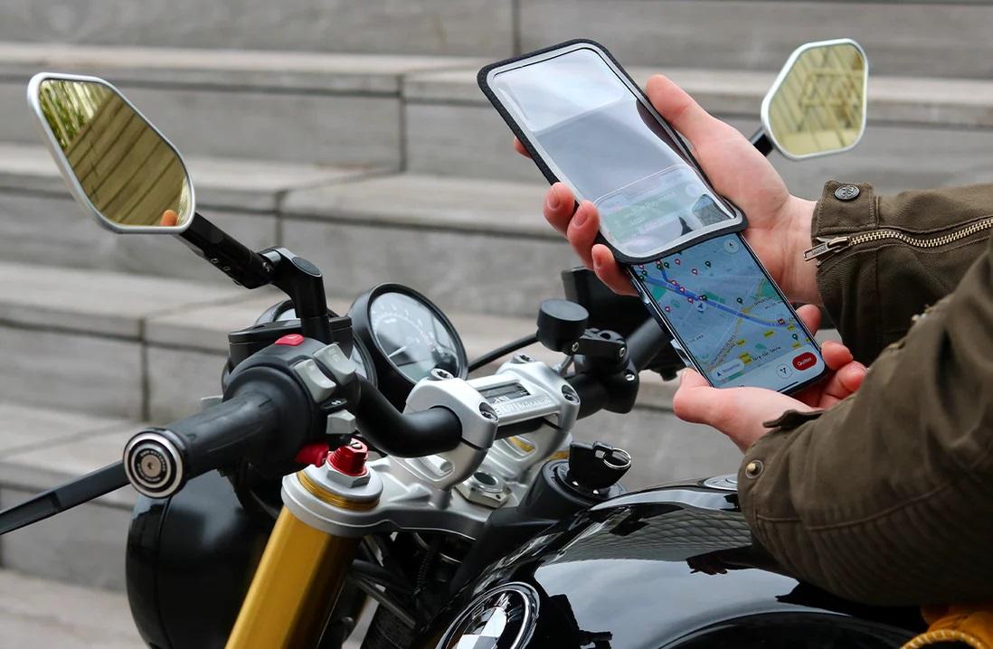 – nella posizione di guida lo smartphone non deve coprire la strumentazione della moto o i retrovisori;