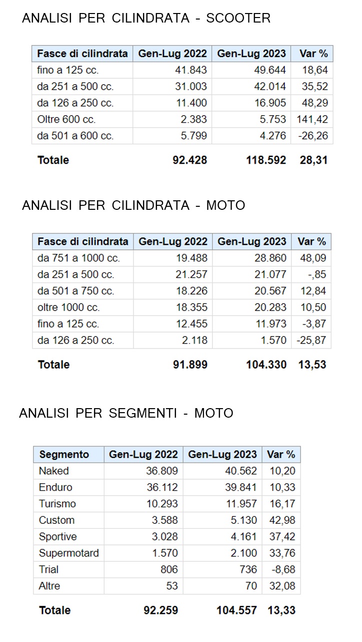MERCATO MOTO, SCOOTER E CICLOMOTORI NEI PRIMI SETTE MESI DEL 2023