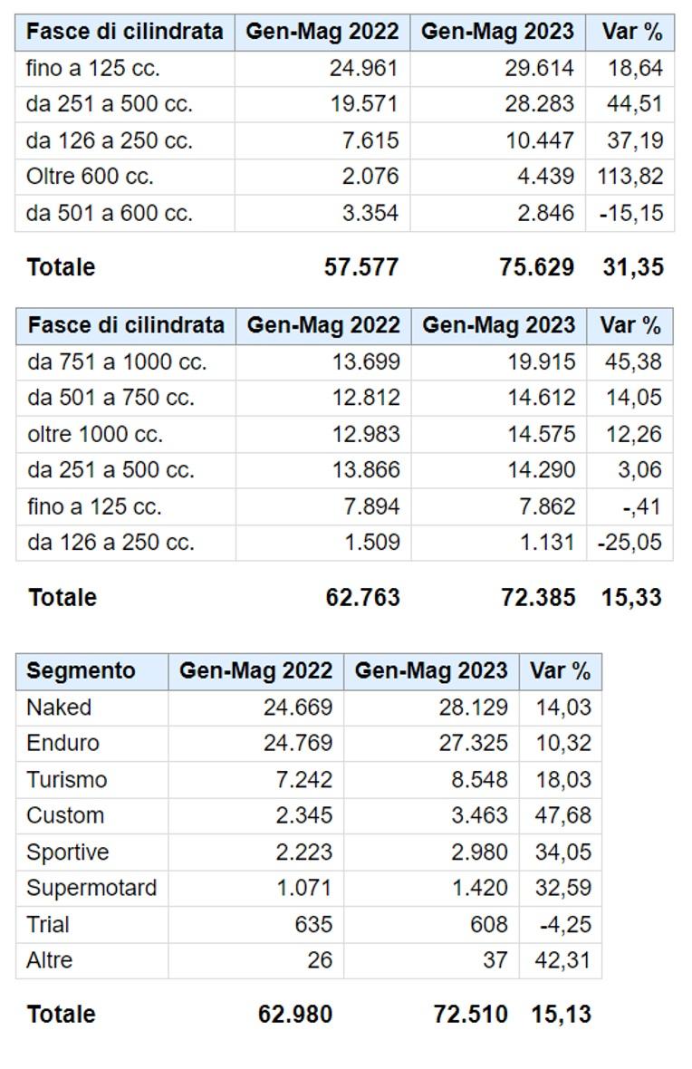 IMMATRICOLAZIONI MOTO, SCOOTER E CICLOMOTORI A MAGGIO 2023