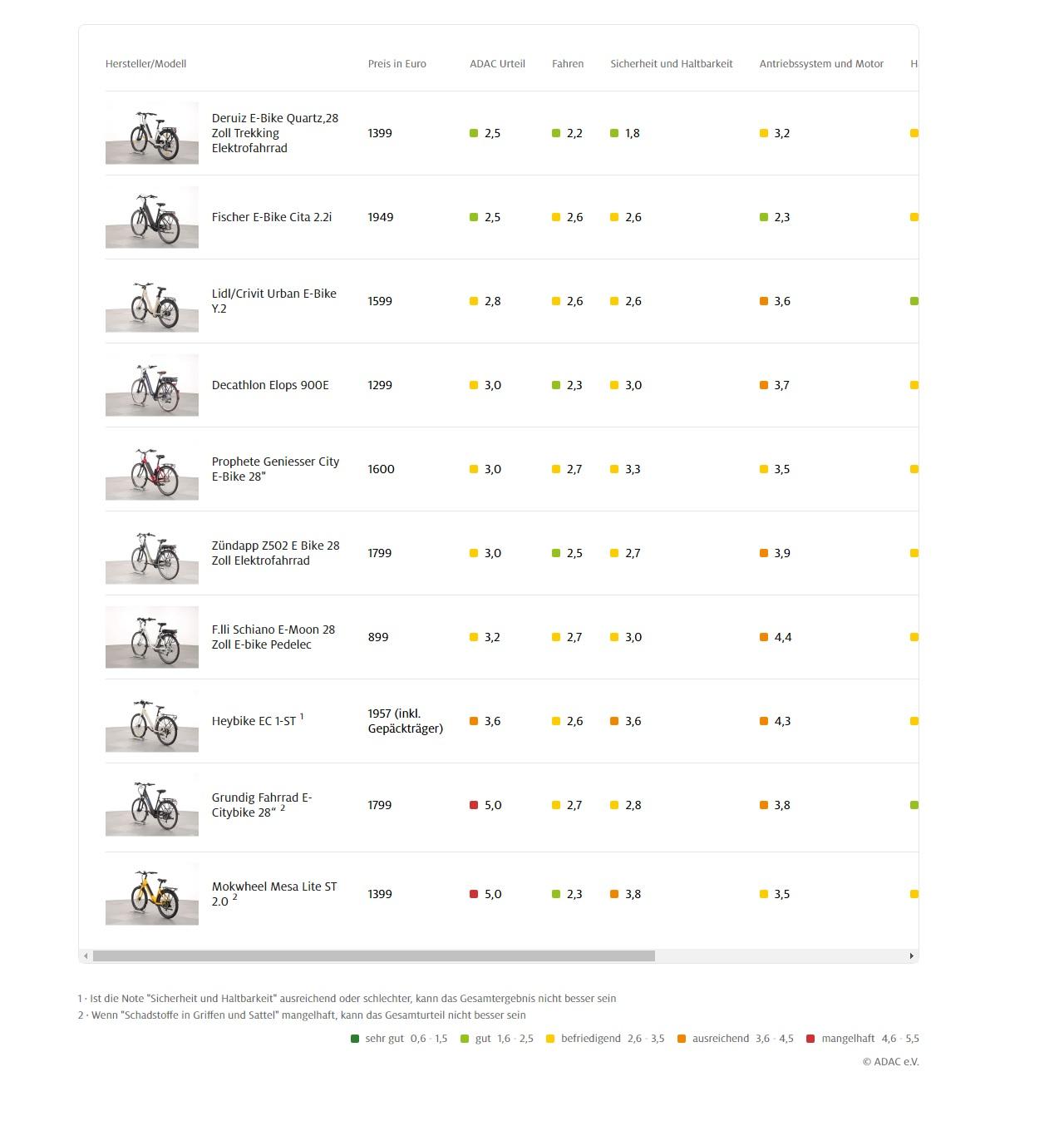 L’ADAC ha testato 10 bici elettriche a pedalata assistita Pedelec, con un prezzo fino a 2000 euro. Ecco i risultati
