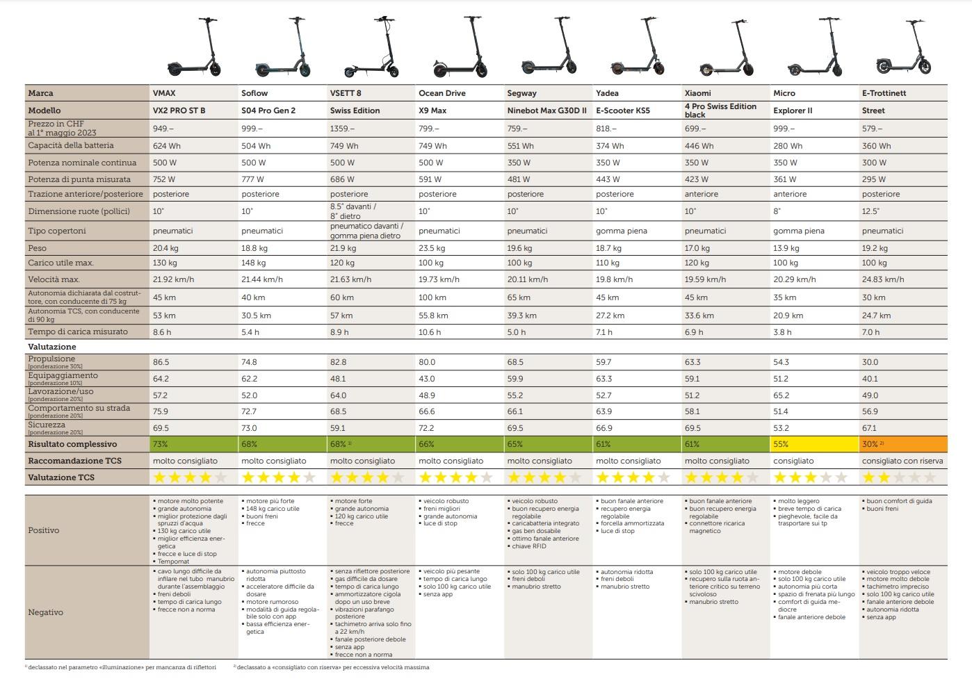 Ecco i migliori monopattini elettrici 2023: il Touring Club Svizzero ha messo 9 modelli a confronto, solo 1 promosso con riserva
