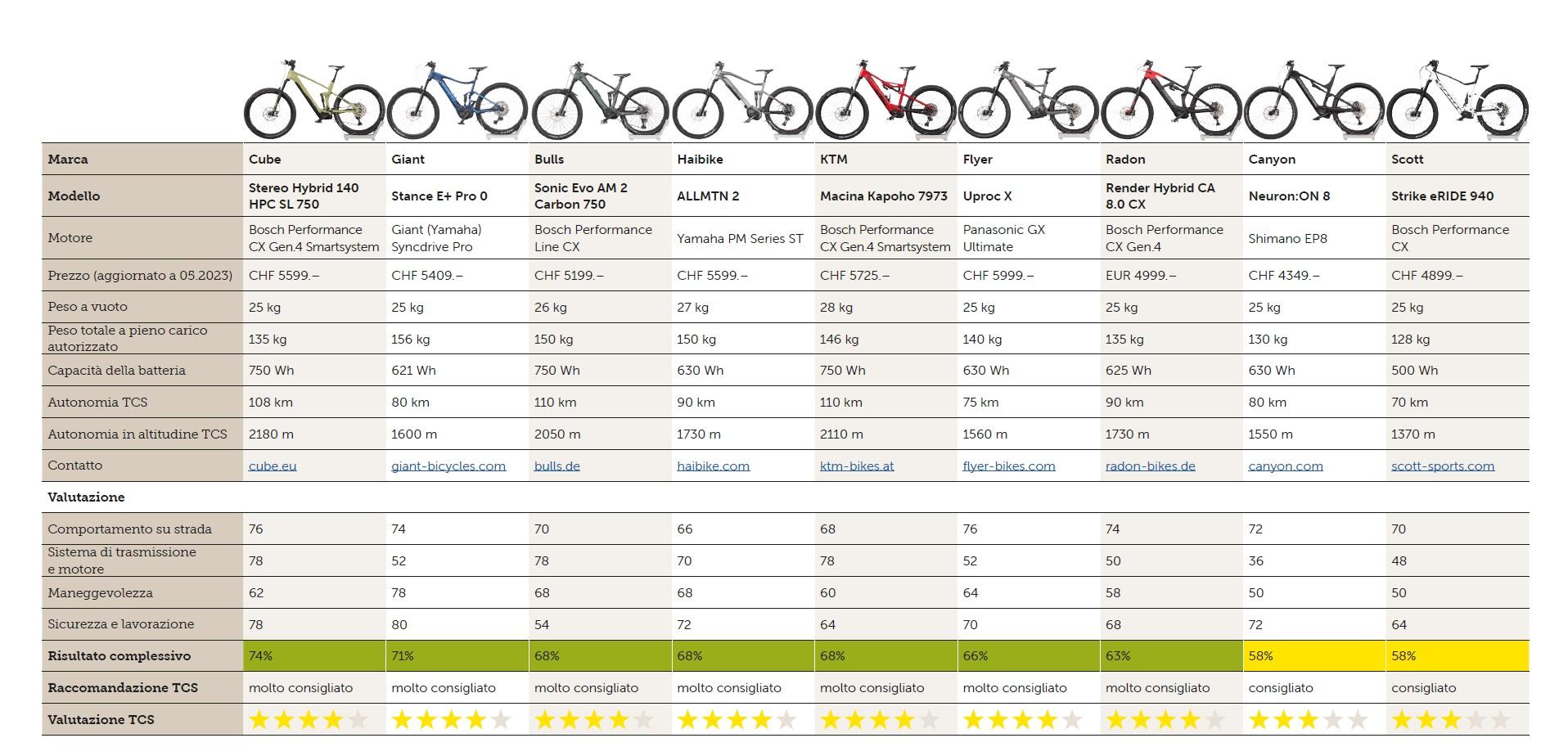 TEST MOUNTAIN BIKE ELETTRICHE 2023 DI TCS, ADAC E ÖAMTC
